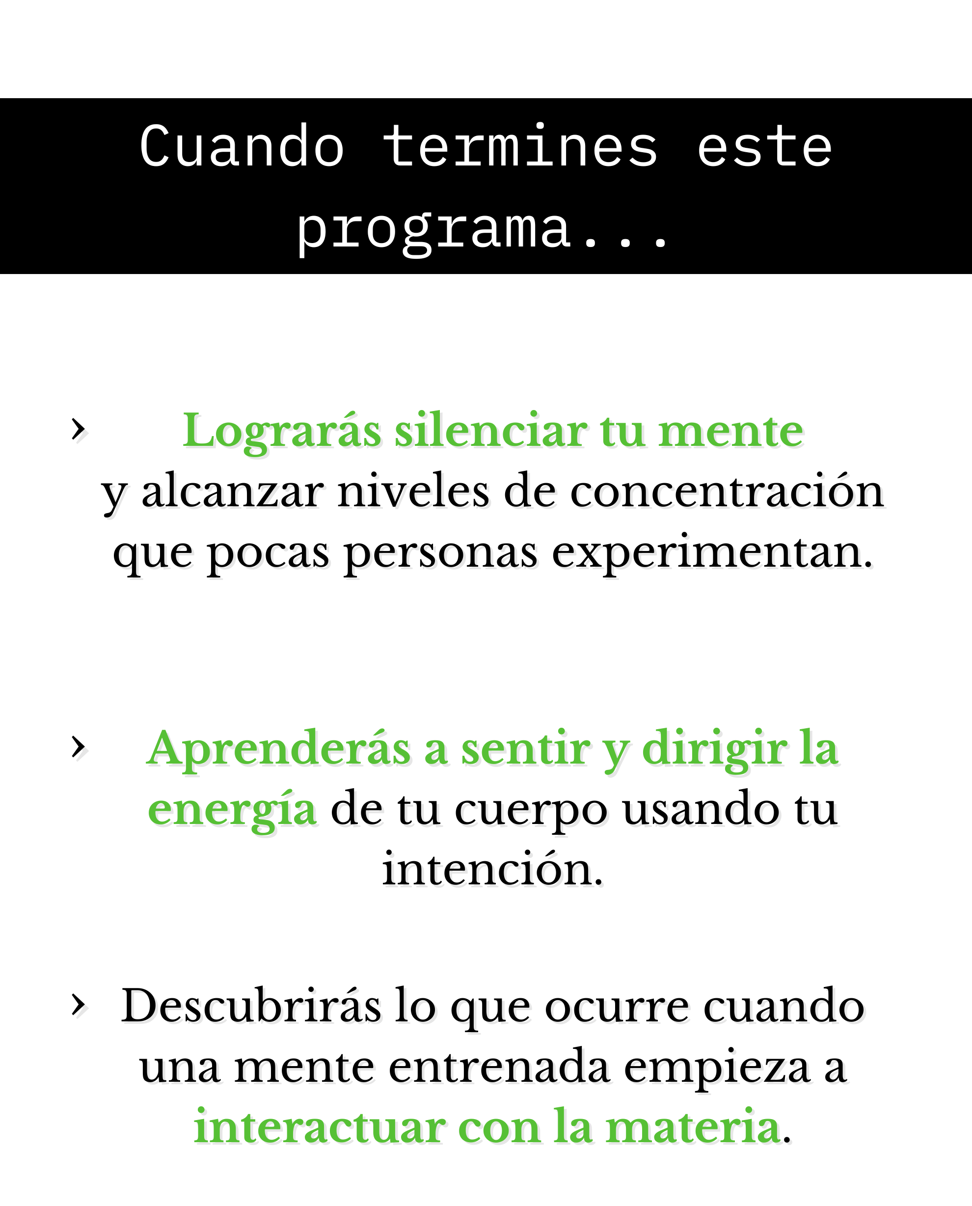 Pensé que sería imposible para mí, pero el entrenamiento está tan bien estructurado que terminé avanzando mucho más de lo que esperaba. Hoy practico con otra confianza y con una sensación mucho más real de control mental.